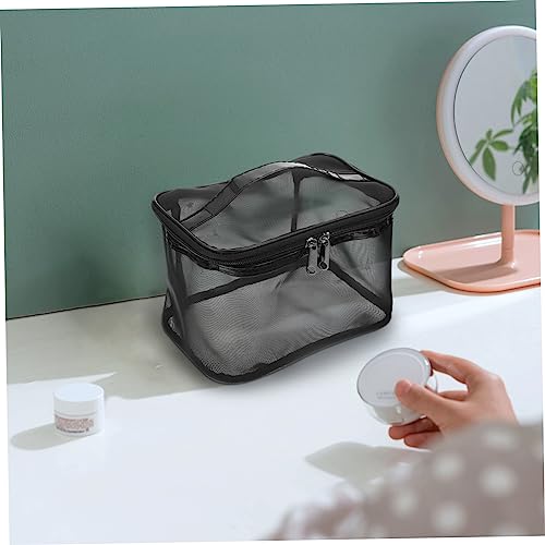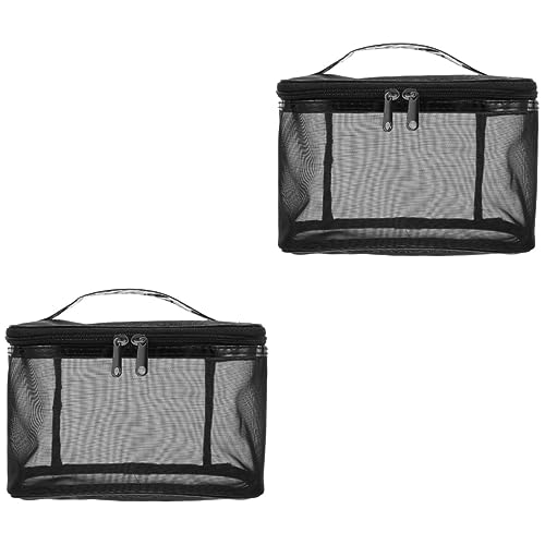 FOMIYES - فوميز. شنطة تخزين للمكياج ومستحضرات التجميل من قطعتين، شنطة منظمة لمستحضرات التجميل، شنطة مستحضرات تجميل للسفر، شنطة مستحضرات تجميل خارجية، شنطة ادوات الزينة، شنطة شبكية لتنظيم مستحضرات التجميل، أسود