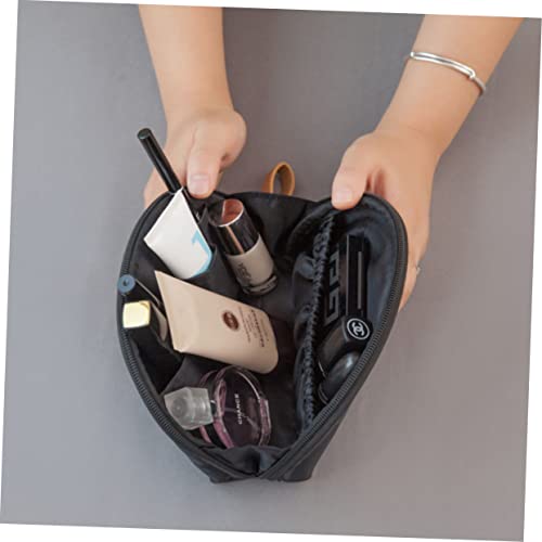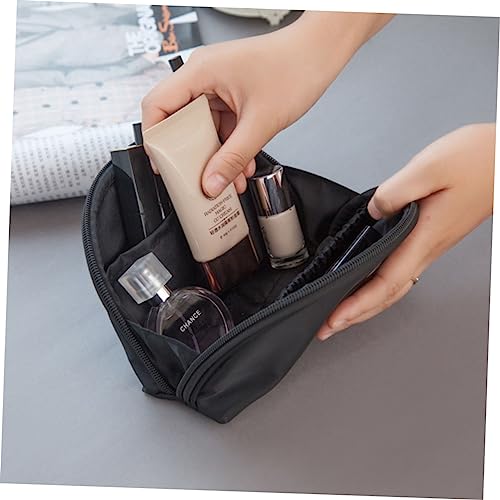 - Makeup bag for purse: fan shape with large capacity for keys, sunglasses, calculator, passport, mascara, lipstick, and powder.