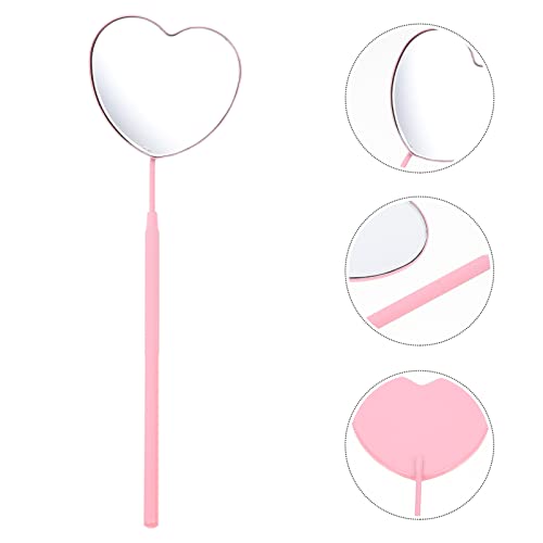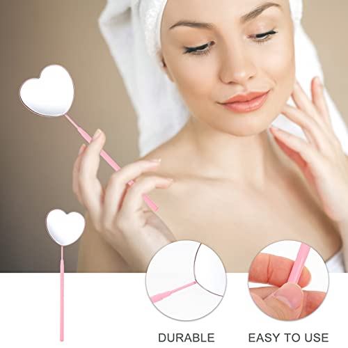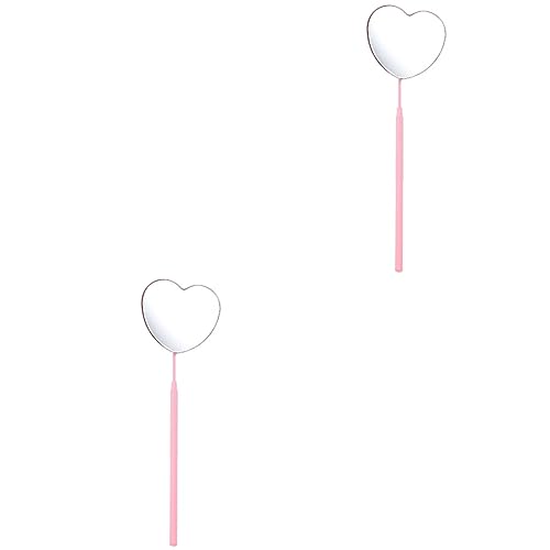 FOMIYES - مرآة لوضع الرموش والتحقق منها على شكل قلب من الستانلس ستيل للبنات، مرأة سهلة الحمل من فوميز، 2 قطعة، لون بينك