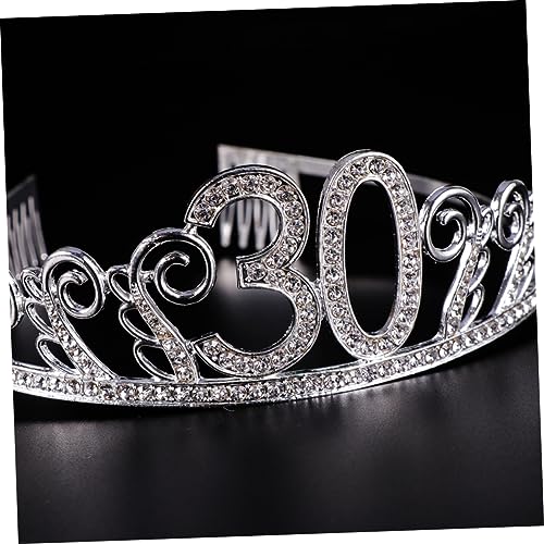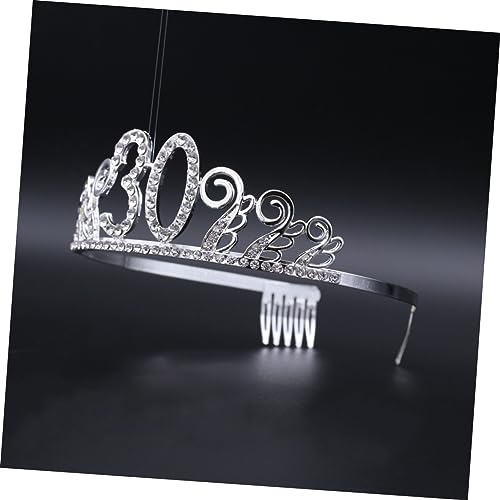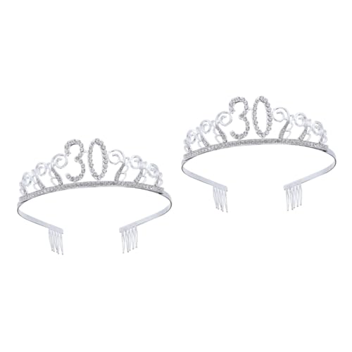 FOMIYES - FOMIYES 2pcs Rhinestone Headbands Rhinestone Crown Red Plaid Headband Birthday Headband Silver Birthday Headband Crown Princess Crowns Plaid Headbands for Women Tiara Comb 30th Tiara Crown