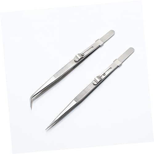FOMIYES - FOMIYES 2pcs Steel Elbow Tweezers Set Multifunctional Pointed Tweezers Kit for Jewelry and Manicure Professional for Eyelash Isolation and Picking