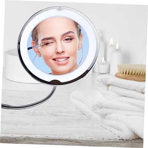 FOMIYES - FOMIYES 360 Makeup Mirror Gooseneck LED Makeup Mirror 10x Magnifying Vanity Compact Travel Tabletop Vanity Makeup Table Top Make up Sucker LED