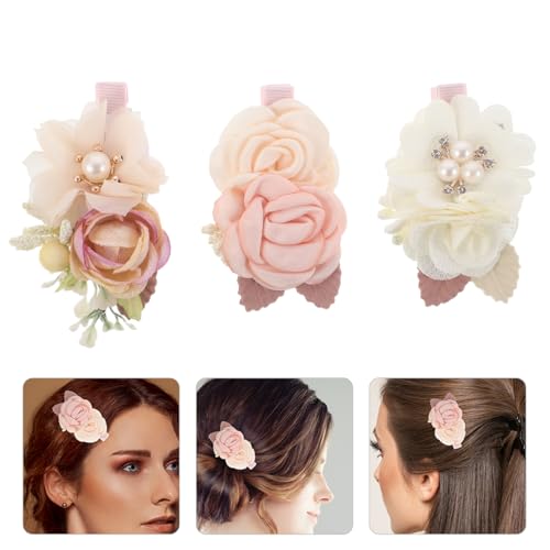 FOMIYES - FOMIYES 3pcs Flower Girl Hair Clips - Floral Side Hairpins For Wedding Princess Style Pink Hair Accessories For Flower Girls Bridesmaid