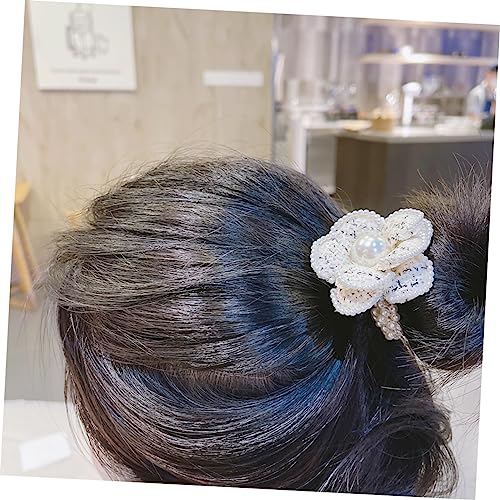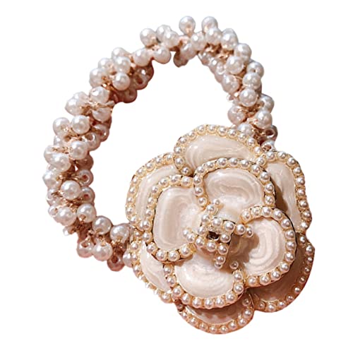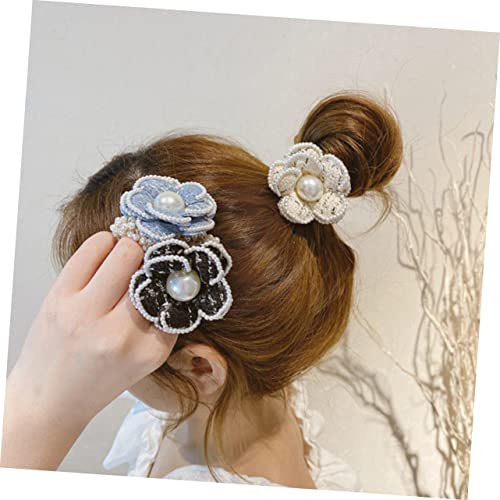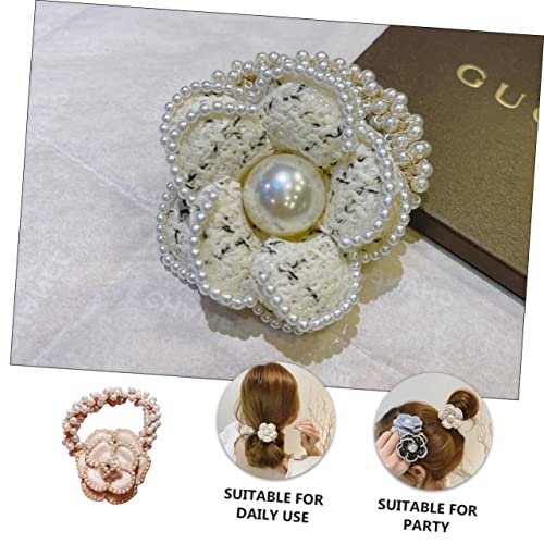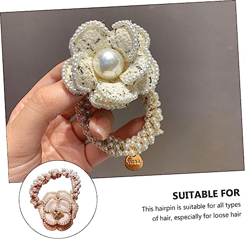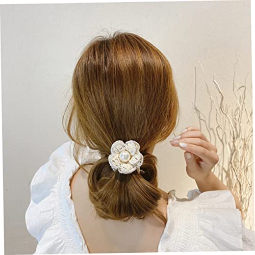 FOMIYES - FOMIYES 3pcs Hair Ring Hair Ribbons Flower Hair Band Flower Hair Rope Pearl Hair Tie Camellia Hair Rope Women Headdress Women Hair Band Hair Accessories Girl Miss Cotton Linen White