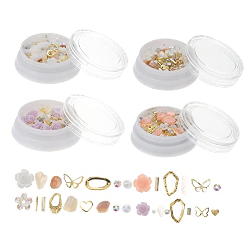 FOMIYES - FOMIYES 4 Boxes 3d Nail Accessories Pearl Ornaments Nail Accessories Charms Nail Diamonds Nail Rose Flowers Jewels Stones Nail Crystals Charms 3d Nail Charms Nail Charms for Acrylic Nails, medium,