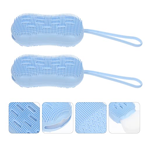 FOMIYES - فوميز. 4 قطع من فرشاة الاستحمام بمقبض لغسل الجسم من السيليكون، ليفة تنظيف الجسم للاستخدام المنزلي، فرشاة سيليكون مزدوجة الجوانب جل السيليكا