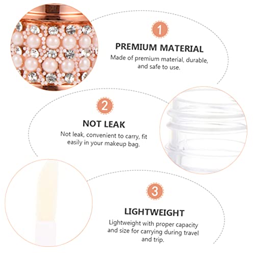 - أنابيب عينات ملمع الشفاه: تصميم فريد من نوعه: غطاء ذهبي وردي مع زخرفة من الماس اللؤلؤي. (ليست لؤلؤة حقيقية.) تبدو الألماس اللؤلؤي رائعة ولامعة والألوان تجعل أنابيب ملمع الشفاه الخاصة بك أكثر جمالاً.