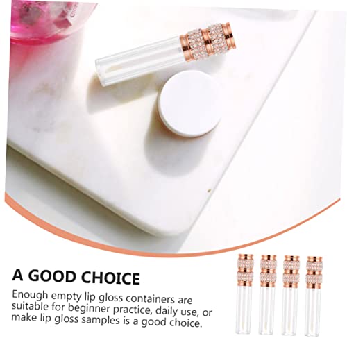 FOMIYES - فوميز. 4 قطع من انابيب ملمع الشفاه واحمر الشفاه، حاويات عينات من احمر الشفاه السائل، حاويات فارغة لملمع الشفاه، انابيب بلاستيكية شفافة لملمع الشفاه، انابيب بلاستيكية مرصعة بالترتر الذهبي اللؤلؤي
