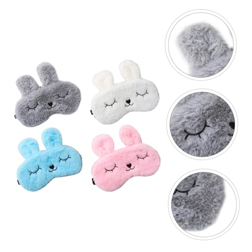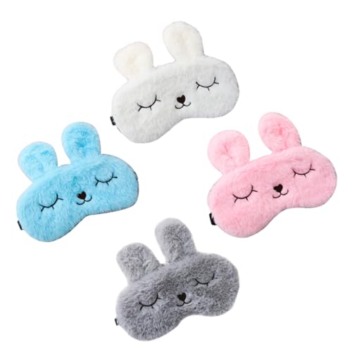 FOMIYES - فوميز. مجموعة من 4 قطع من نظارات واقية من الشمس مناسبة للسفر مناسبة للنوم وظلال عيون ليلية ناعمة لحجب الضوء، اقنعة عين جميلة، اقنعة عيون مخملية للاطفال بتصميم ارنب لطيف