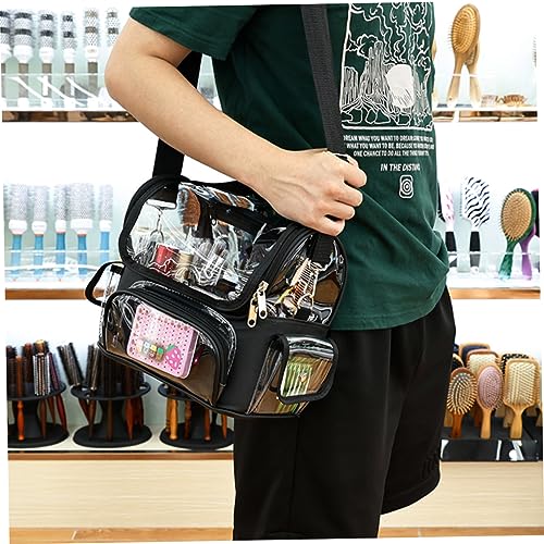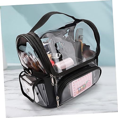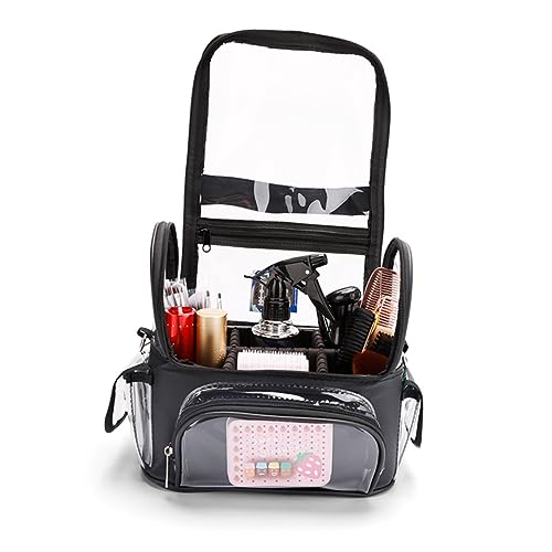 FOMIYES - فوميز. شنطة سفر شفافة للحلاق، شنطة سفر لمستحضرات التجميل، شنطة ادوات من بلاستيك PVC، شنطة سفر لمصففي الشعر، شنطة سفر كبيرة لمصففي الشعر، أسود