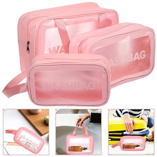 FOMIYES - FOMIYES Clear Travel Makeup Bag Pouch: 3pcs Portable Cosmetic Bags Waterproof Zipper Pouches Toiletry Organizer Bags with Handle