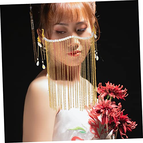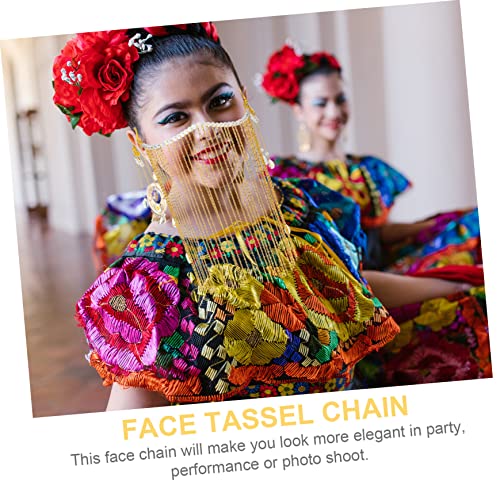 FOMIYES - FOMIYES Curtain Vintage Ornament Fringe Masquerade Chain Face Cover Chain Crystal Face Chain Masquerade Face Chain Tassel Chain Masquerade Masks Chain Mask Jewelry Cover Face Miss Alloy