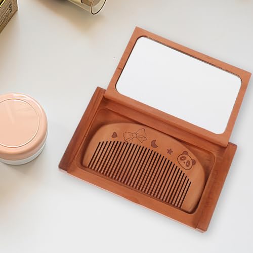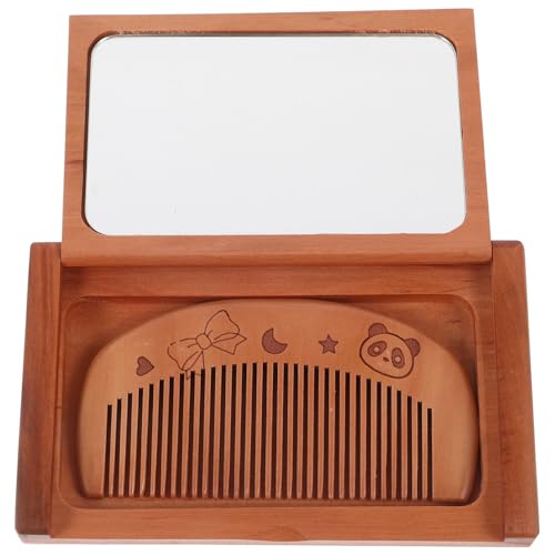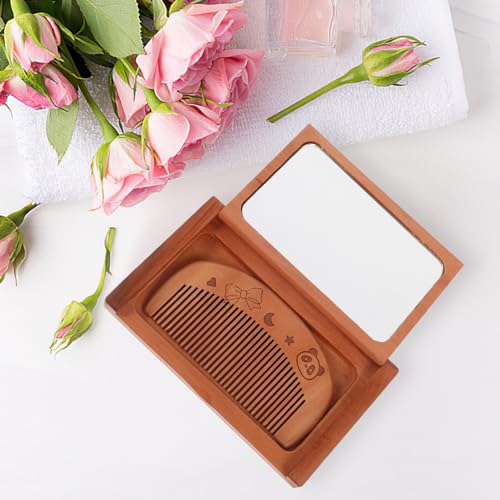 FOMIYES - فوميز. مجموعة مراة جيب خشبية ومشط، مراة مكياج ومستحضرات تجميل واسنان، مراة سفر قابلة للطي للرجال والنساء