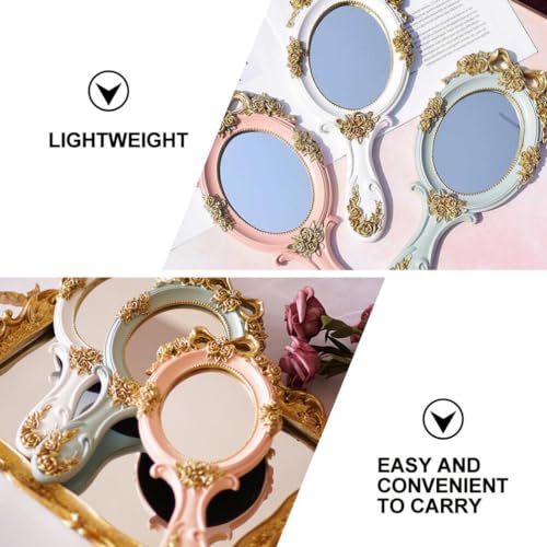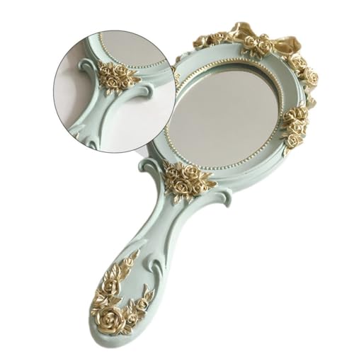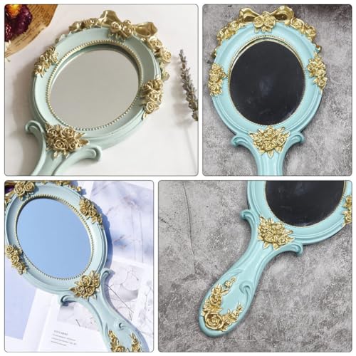 FOMIYES - FOMIYES Heart-Shaped Makeup Mirror with Handle Retro Handheld Mirror Portable Cosmetic Mirror for Women Girls Blue