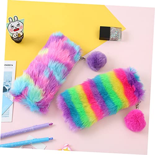 FOMIYES - FOMIYES Plush Pencil Pouch Fluffy Handbag Pencil Case Miss Make up Wallet Bag Makeup Organizer Stationery Purse Plush Pen Bag, Picture 1, 21 * 10.5cm, Sports