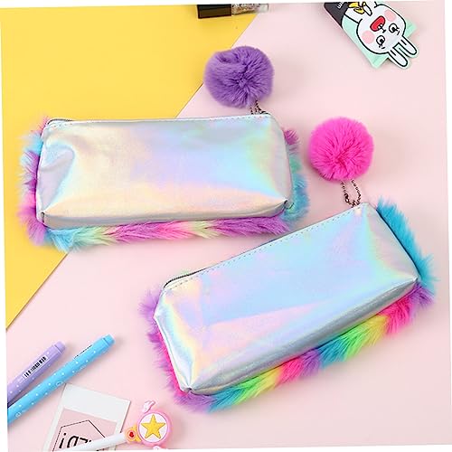 - Rainbow fluffy handbag-- easy to insert pen and take out, you can keep and store your stationery or other small items in the organization.