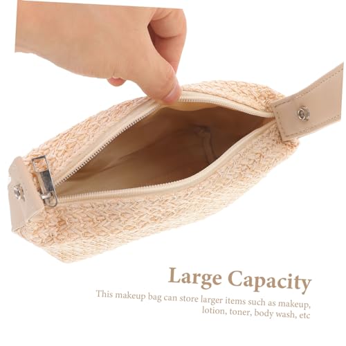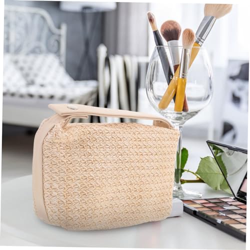 FOMIYES - FOMIYES Travel Makeup Pouch Large Capacity Portable Toiletry Bag for Women Straw Material Easy to Clean Multi-functional Storage for Cosmetics Phone and