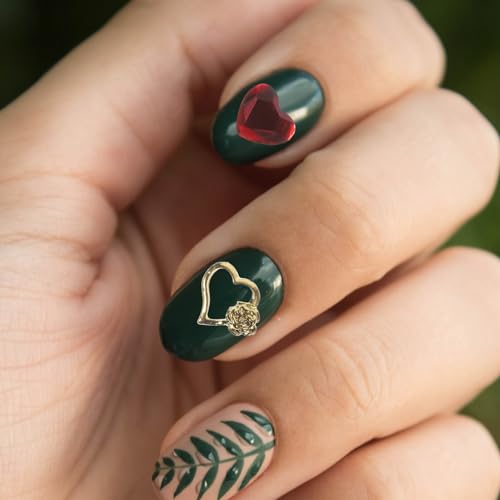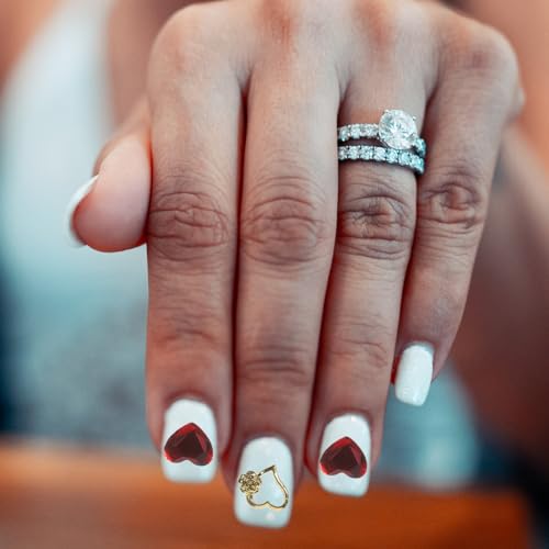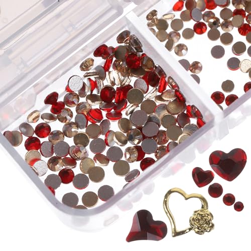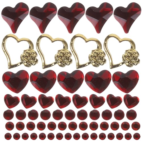 FOMIYES - FOMIYES Valentines Day Nail Charms Flatback Rhinestone Beads 3D Red Heart Nail Gems Alloy Heart Nail Jewel Studs for Women Girls