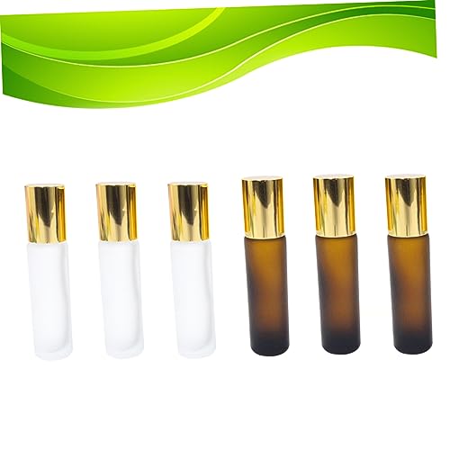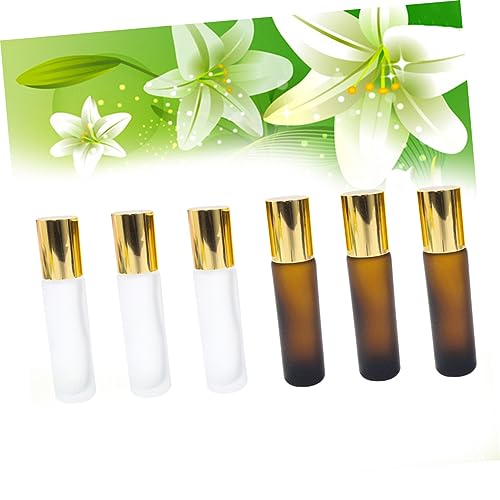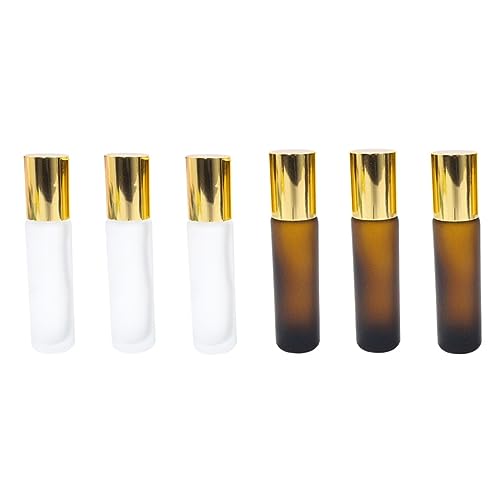 FOMIYES - فوميز. زجاجات دوارة زجاجية للنساء، 6 قطع من زجاجات الزيت للنساء، زجاجات دوارة زجاجية بلون بني، زجاجة زيت عطري بقفل قطارة