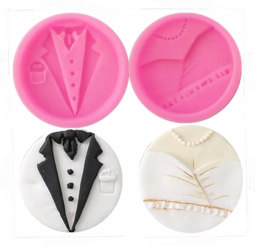 Generic - Fondant Mold Wedding Dress and Suit Set 2 Pieces for Chocolate Making Fondant Dough Wedding Cake Decoration