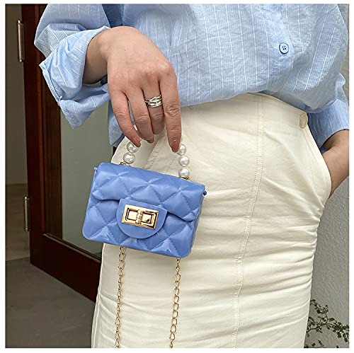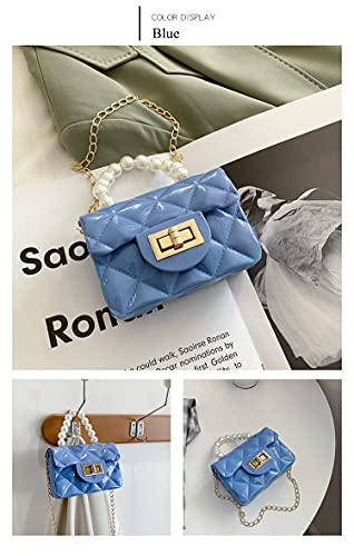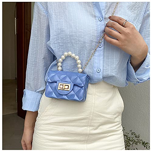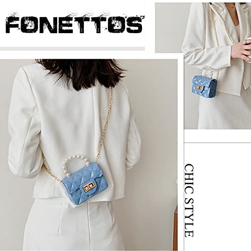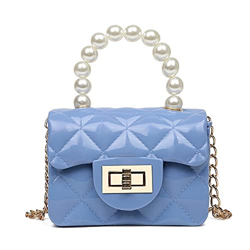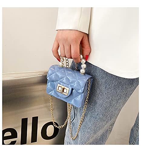 FONETTOS - Mini Jelly Purse, Girls Mini Bag Children Small Crossbody Purse Kid with Gold Chain, H-blue, 12*5*8cm