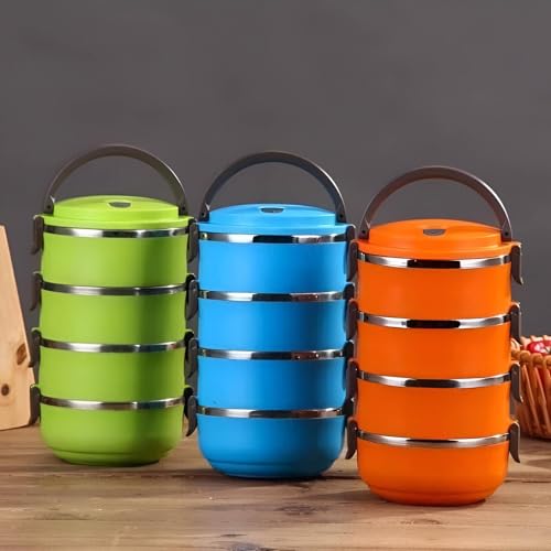 Generic - عمود طعام - عرض طعام من 4 طوابق من الستانلس ستيل مع عزل داخلي ولمسة نهائية متعددة الألوان - الحفاظ على درجة الحرارة بكفاءة