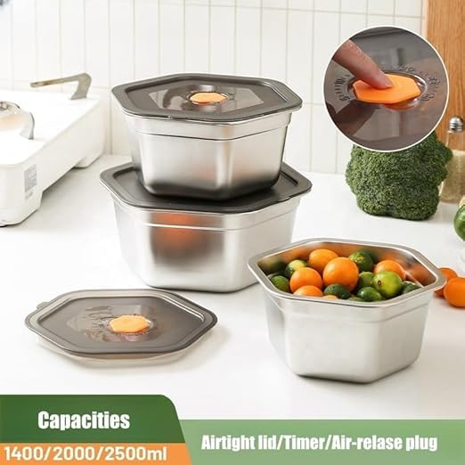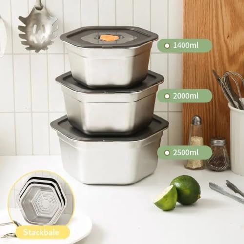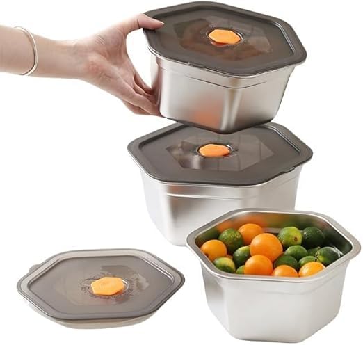 Generic - مجموعة حاويات طعام مع اغطية محكمة الغلق، 3 قطع صندوق حفظ متعدد الاغراض، حاوية تخزين من الستانلس ستيل للتجميد والتسخين، مانعة للتسرب، سهلة التنظيف