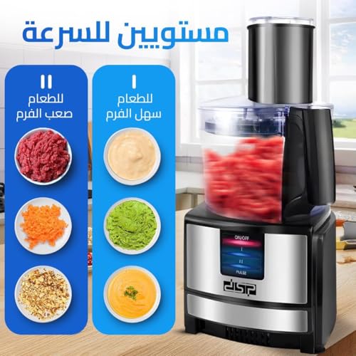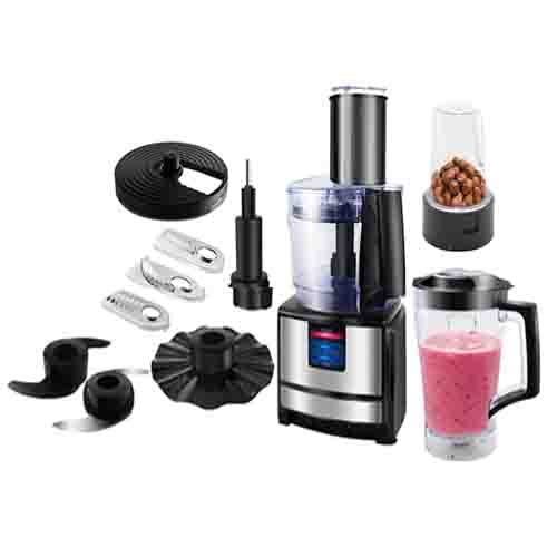 - Includes a large number of cutting blades for all your chopping needs. Includes a food processor for grinding spices while preserving their beneficial properties. Features a drawer for storing and organizing the cutting blades. Large blender capacity for efficient gatherings. Securely locks the blender and food processor. Includes a storage unit for chopping fruits and vegetables. The machine has four stable feet to prevent movement while in operation. The cord is long for comfortable use.