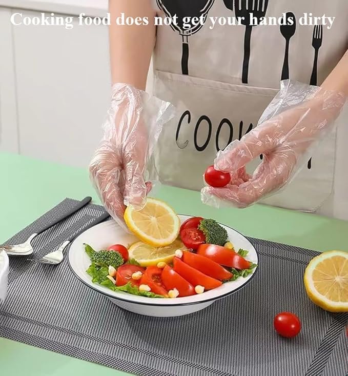 Generic - Food-Safe Disposable Plastic Gloves – 100 Pcs Clear Hand Gloves for Cooking, Cleaning, Hair Dyeing & Household Tasks – Lightweight, Waterproof & Comfortable for Everyday Hygiene