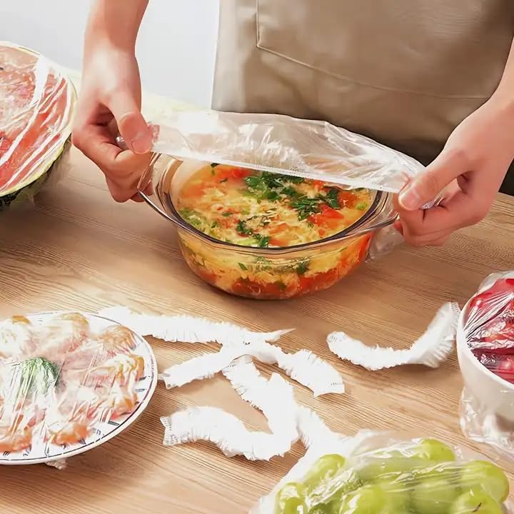 - إغلاق بأستك مرن: صُممت لتتمدد على مقاسات مختلفة وتثبت بإحكام حول الحواف لتوفير ملاءمة محكمة على البولات والأطباق والحاويات.
