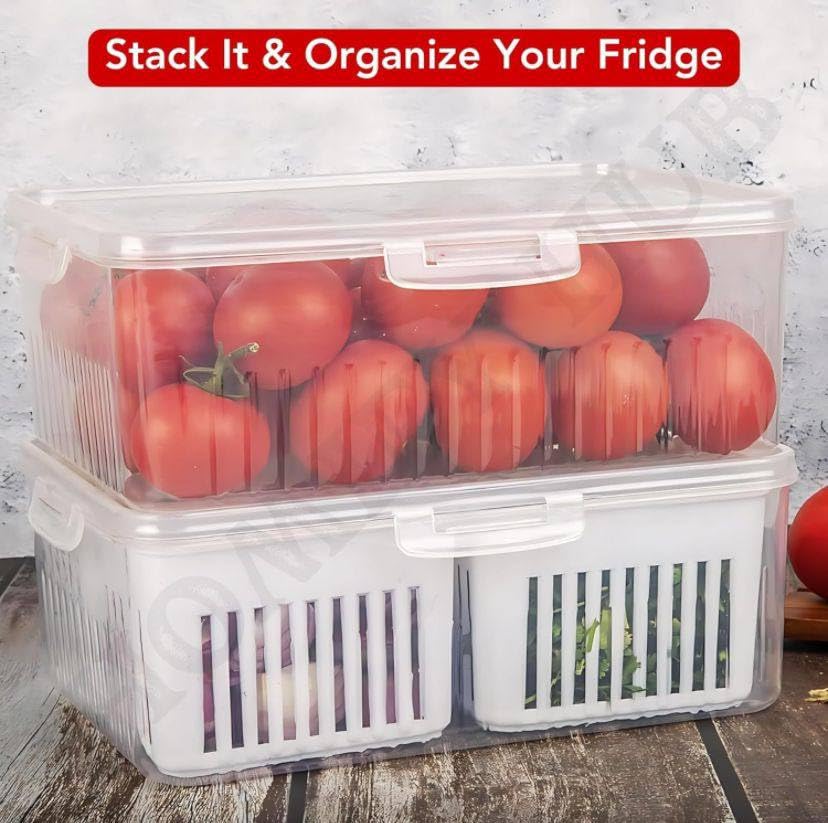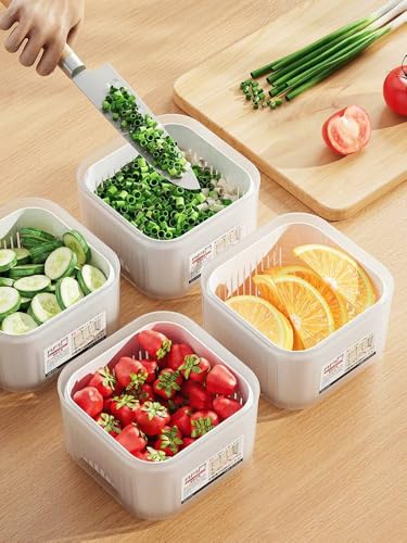 Generic - Food Storage Box with Lid and 6 Compartments, Stackable Fruit Food Storage Containers in Refrigerator for Storing Green Onion Food Storage Container with Strainer for Vegetables and Fruits H