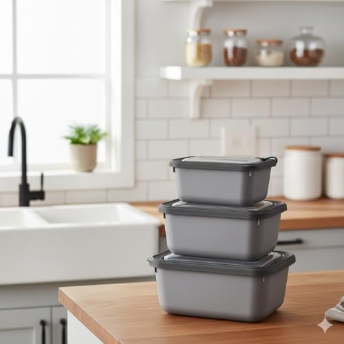 Generic - Food storage container set, 3 pieces, microwave safe, 600ml/1050ml/1750ml, assorted colors, plain, made in Türkiye (GRAY)