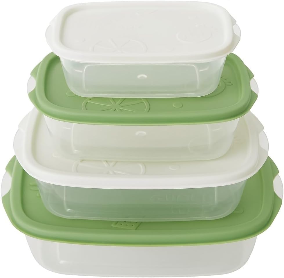 Generic - علب تخزين الطعام، علب الثلاجة مع أغطية محكمة الغلق ومانعة للتسرب، آمنة للاستخدام في الميكروويف لمدة 3 دقائق، علب بيضاوية آمنة غذائيا للخضروات والفواكه، سهلة التنظيف، 4 قطع، لون أخضر