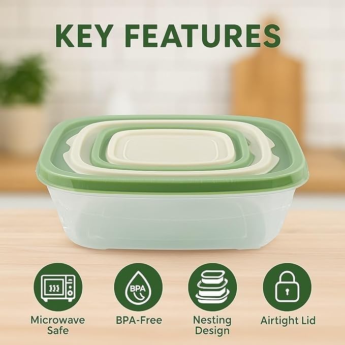 - حاويات تخزين الطعام لتنظيم الثلاجة: حافظ على الخضروات والفواكه مرتبة مع أغطية محكمة الإغلاق وإغلاق مانع للتسرب، لذلك يبدأ الصباح المصري المزدحم بفوضى أقل وإعداد وجبات أسرع.