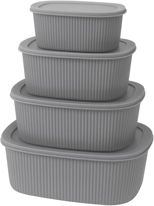 Generic - Food Storage Containers 4 Pcs Serving Bowl Set With Lids Microwave And Freezer Safe Leakproof Tableware Bowls For Meal Prep Mixing And Storage Easy To Clean (Grey)