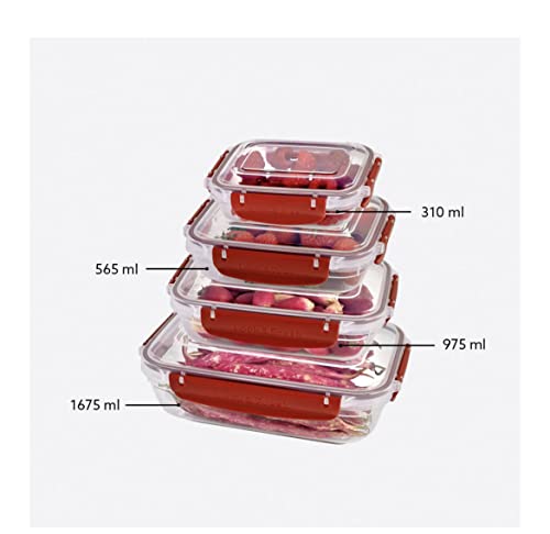 Eagles Picks - دنيا طقم علب طعام ماستر مستطيلة الشكل من 4 قطع (310-565-975-1675 مل)