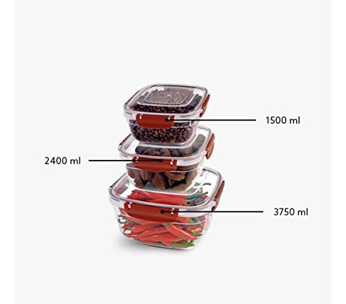 Eagles Picks - Food Storage Containers - Plastic Sealed Square Set of 3 (1500-2400 - 3750 ml)