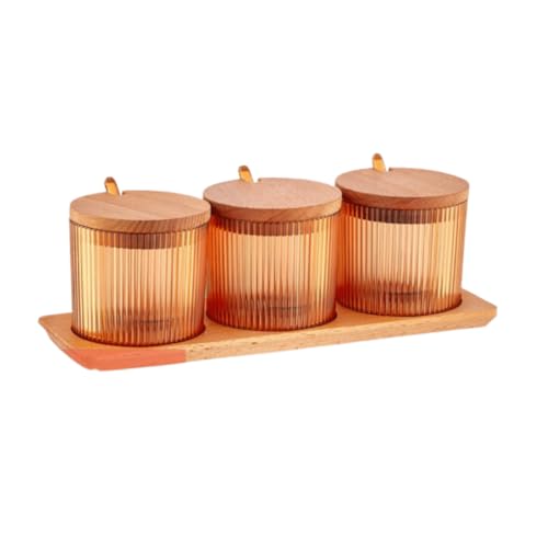 - COMPLETE SET: Includes storage jars with spoons and a wooden serving tray, perfect for organising kitchen ingredients and dry goods