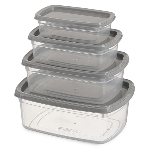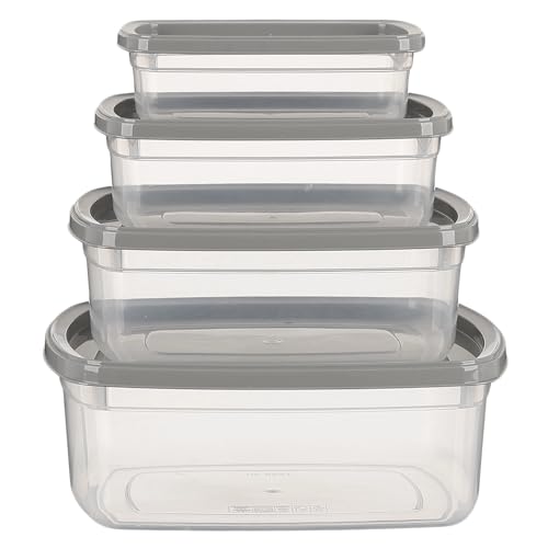 Generic - حاويات تخزين الطعام مع اغطية رمادية، بلاستيك شفاف، قابلة للتكديس، مجموعة من 4 قطع