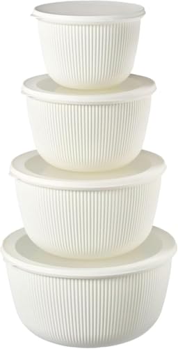 Generic - Food Storage Containers With Lids 4 Pcs Set Microwave And Freezer Safe Leak Proof Bowls For Meal Prep Mixing Serving Easy Clean Plastic Kitchen Containers (White)