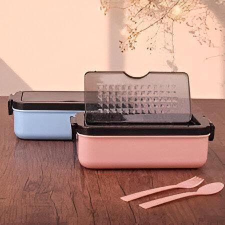 - The lunch box features a modern rectangular shape, optimizing space efficiency in bags and backpacks, and providing a neat, organized way to carry your meals while preventing spills and messes during transport color baby blue,pink.