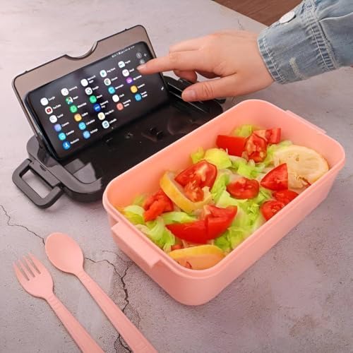 Generic - Food Storage - Spacious 1 Quart Portable Lunch Box with Fork, Spoon, and Cell Phone Stand for Daily Use (color-baby blue)