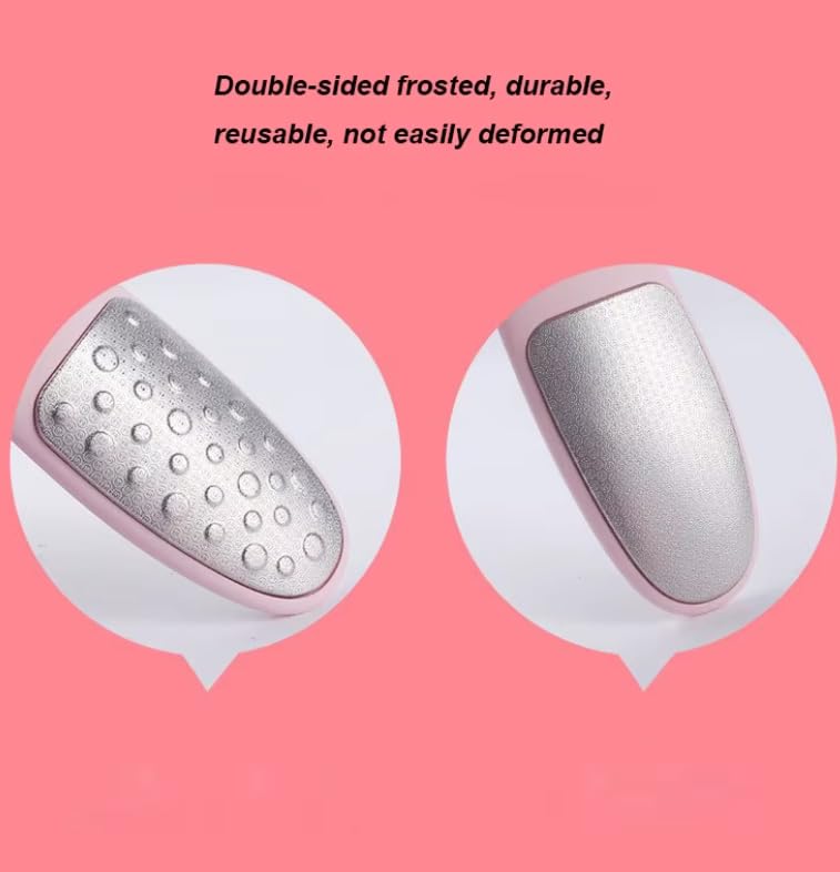 - تصميم مزدوج السطح سميك ورفيع، مناسب لمختلف سماكات الجلد الميت ومسامير القدم والجلد المتصلب.