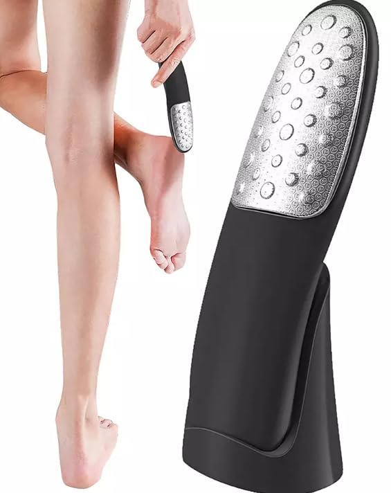 Generic - أداة لبرد القدمين، تصميم مزدوج الجوانب سميك ورفيع مع دعم تصريف سفلي، سطح برد من الفولاذ المقاوم للصدأ لإزالة مسامير القدم (الكالو) مزودة بمقبض من بلاستيك ايه بي اس، للاستخدام المنزلي - لون أسود