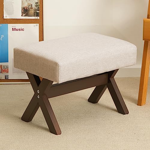 - COMFORTABLE FOOTSTOOL: The thickly padded foam cushion top is covered by linen fabric, and the X-design solid wooden legs make the whole foot stool more stable and prevent tipping. when you put your bare feet on the ottoman foot rest, the small ottoman will help with tension relief for your feet and less pressure on your legs.