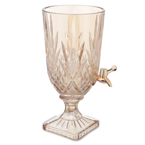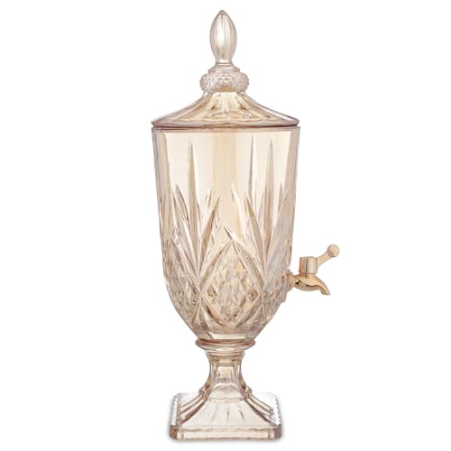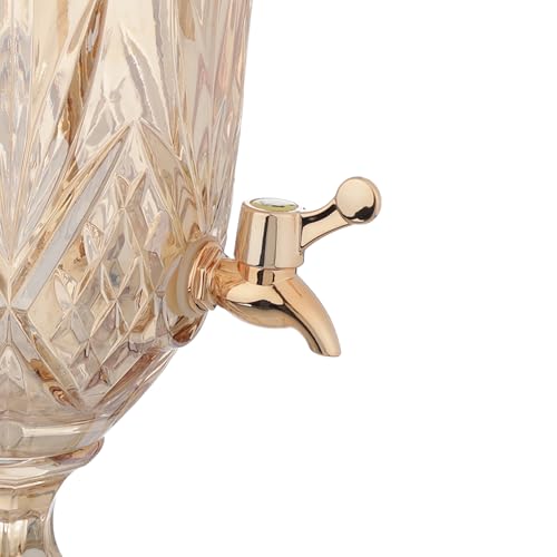 - تصميم أنيق: موزع مشروبات زجاجي مذهل بلون ذهبي فاتح يتميز بنمط كلاسيكي دائري مقطوع بالألماس يضيف لمسة راقية إلى أي إعداد طاولة أو مناسبة