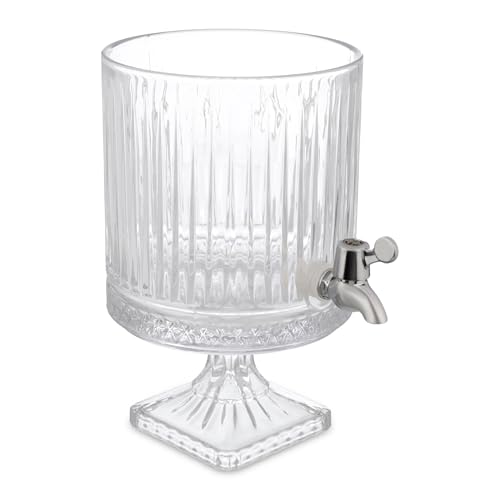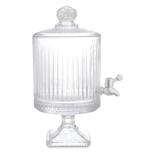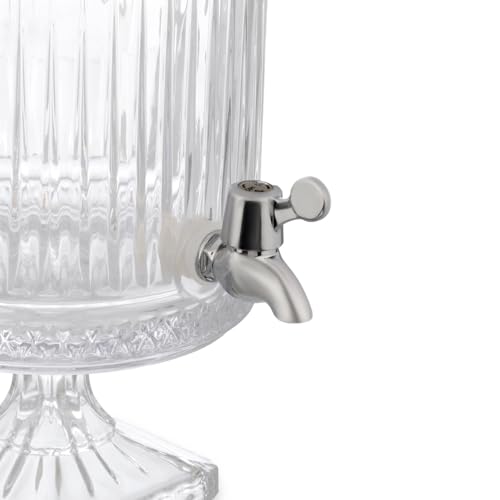 - ELEGANT DESIGN: Footed glass beverage dispenser features classic round vertical lines and decorative detailing on the pedestal base, adding a sophisticated touch to any table setting or buffet display