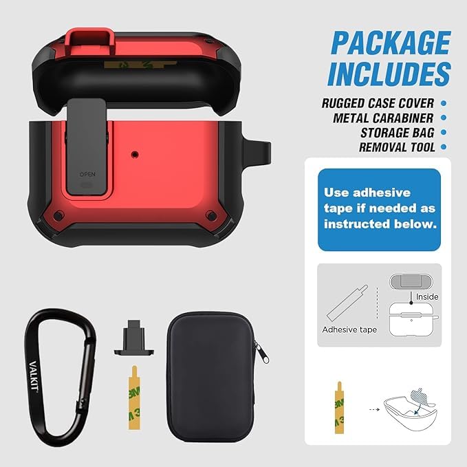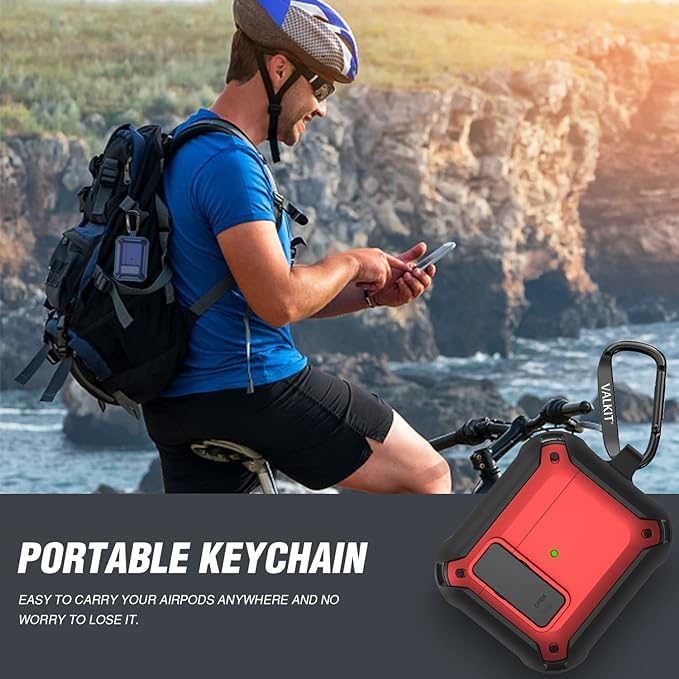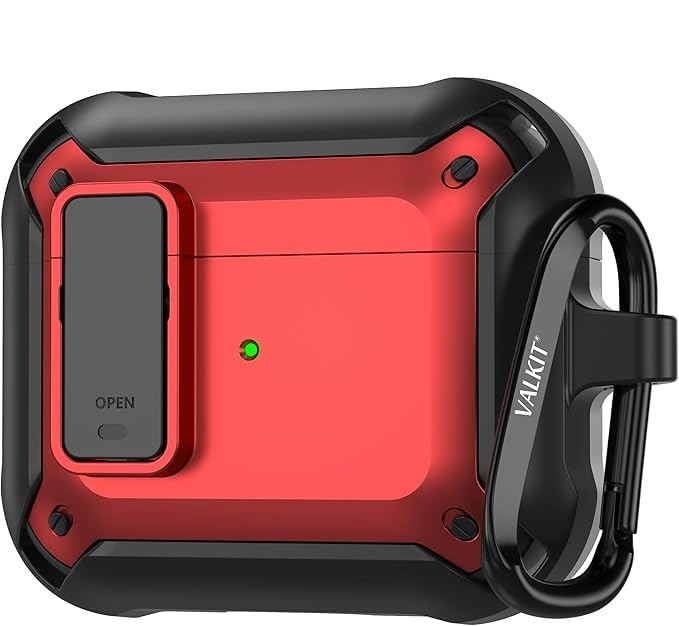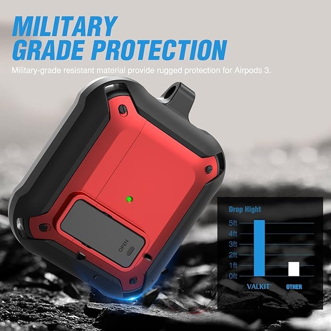 ELMO3EZZ - حافظة حماية لسماعات ايربودز الجيل الثالث 2021 حريمي ورجالي من المعز بقفل تصميم متين الدرجة العسكرية 3 مع سلسلة مفاتيح صلب مضاد للصدمات أسود- أحمر صدفة