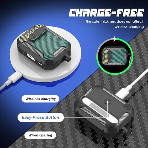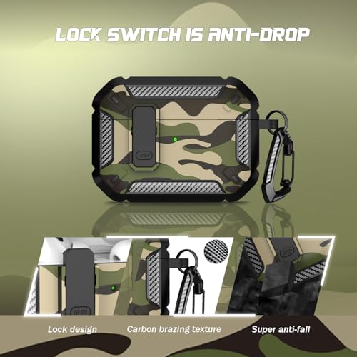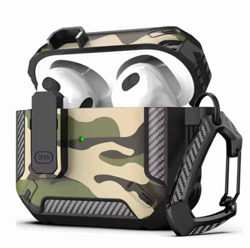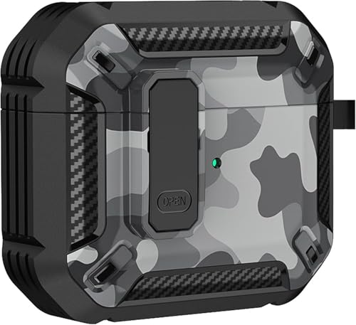 ecosystem - for AirPods 4 Case with Lock, AirPods 4th Generation Case Cover with hook Shockproof AirPod Gen 4 Protective Cases with Keychain Compatible with Apple AirPods4 2024 (Black Camou)