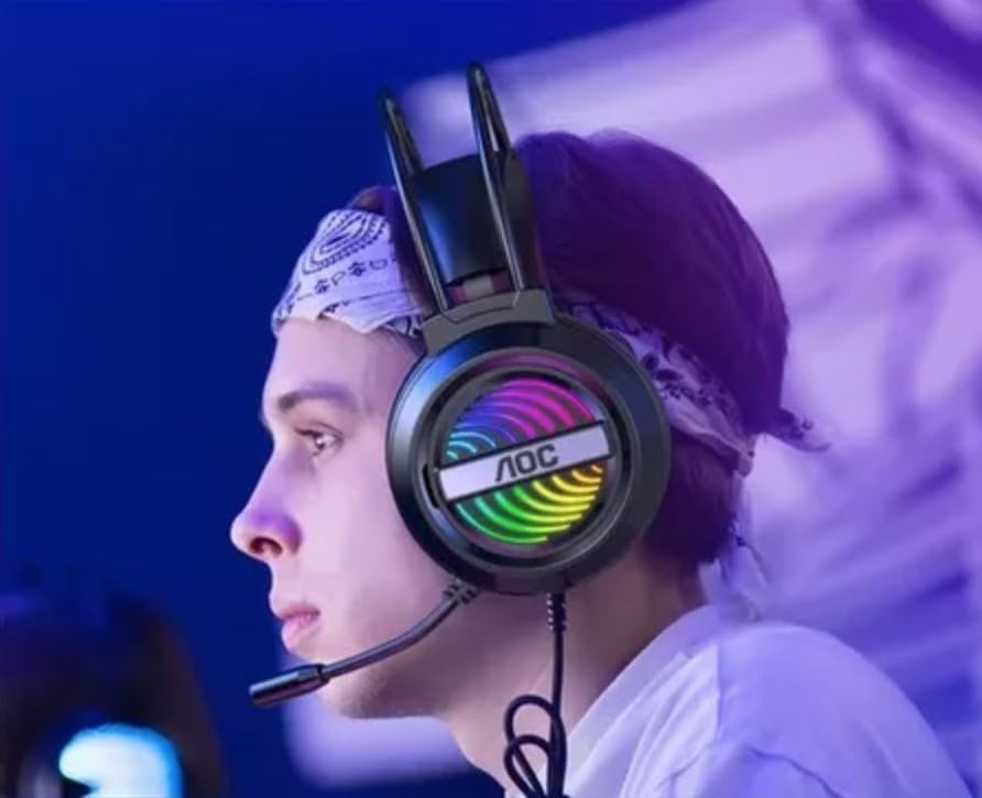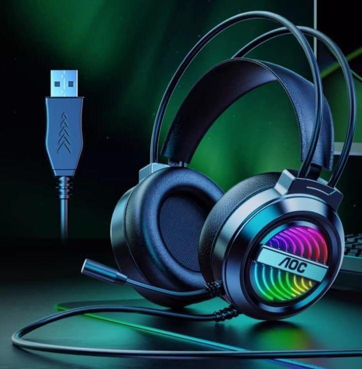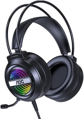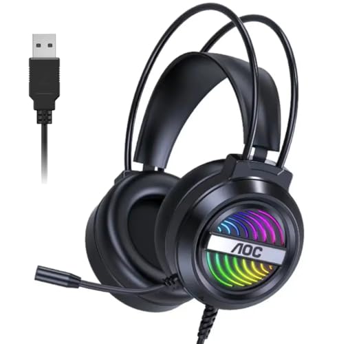 Generic - For AOC GH120 Gaming Headset USB 7.1 Surround Sound -RGB Colorful Lighting Effect – Skin friendly and Breathable – Flixable Noise Reduction Mic – 50mm Drivers – For PC & PS4 (Black)